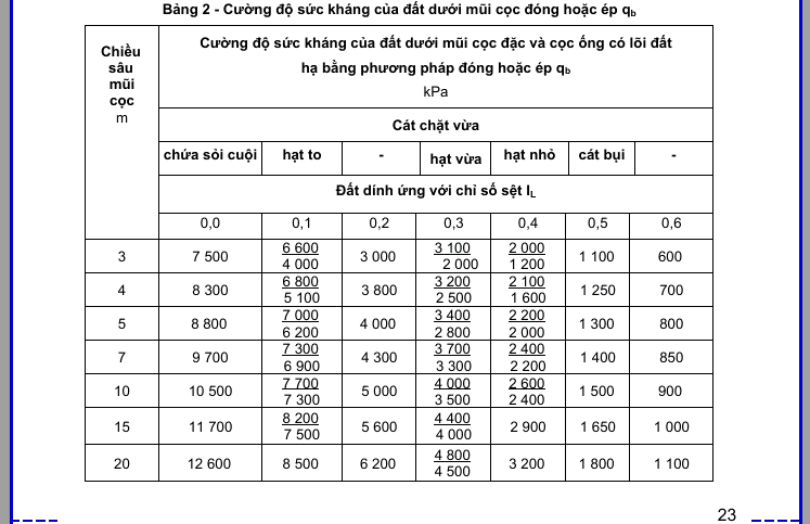 Đây là phương pháp thứ 3 tính sức chịu tải của cọc. Tùy theo mỗi địa chất khác nhau nên dùng phương pháp nào cho hiệu quả tùy thuộc vào kinh nghiệm của mỗi người. Và sau cùng kết quả chính xác nhất vẫn là nén thử tĩnh cọc ngoài hiện trường.