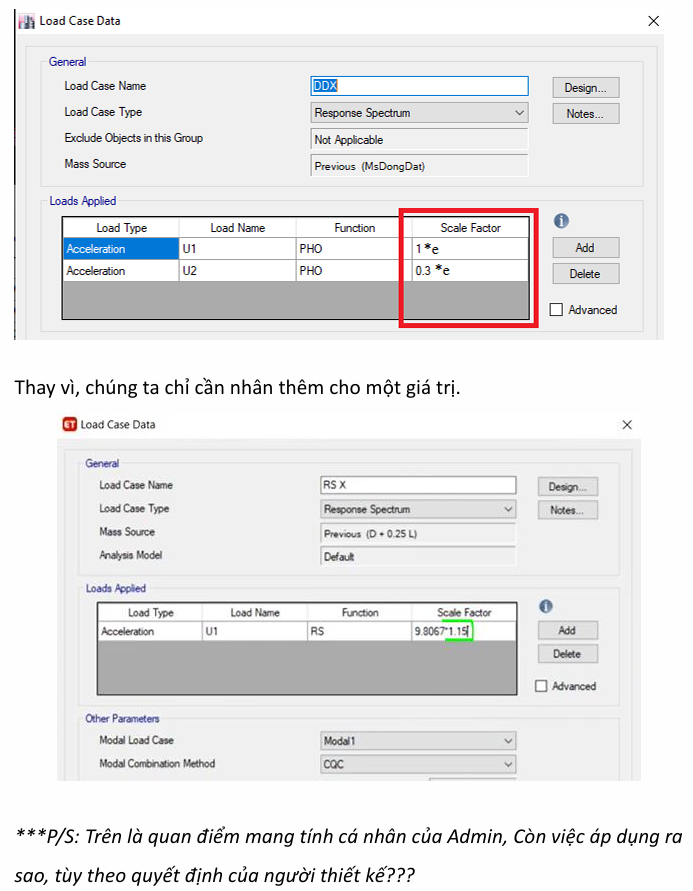 Vì thế khi khai báo Tải trọng động đất theo phổ phản ứng, thường sẽ có 02 cách làm thường thấy như sau: