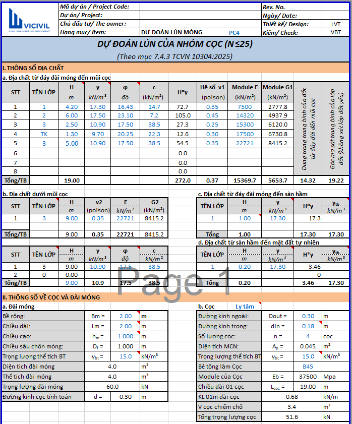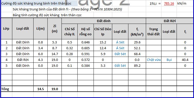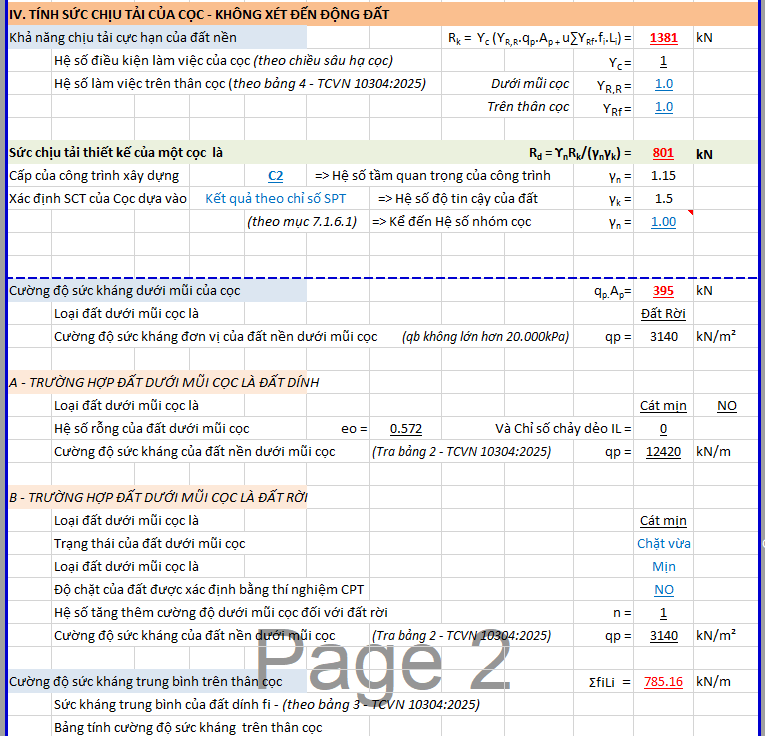 Cả 02 dạng này, đều dựa vào tính chất cơ lý của đất nền. Lần trước, admin đã upload file tính SCT cọc ma sát không moi đất rồi. Để hỗ trợ cho công việc đầy đủ hơn, thì nay tiếp tục gửi đến mọi người thêm bảng tính Cọc ma sát – có moi đất theo TCVN 10304:2025.