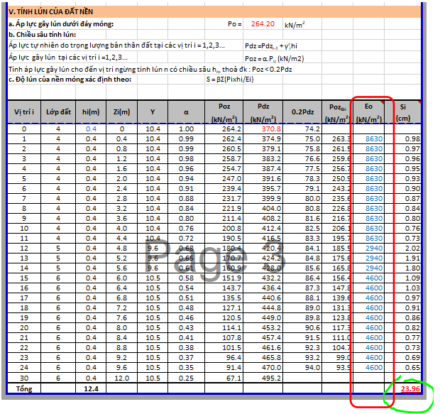 Nhưng nhìn kỹ lại, móng không thỏa là do E khá nhỏ, mặc dù đây là móng cọc. Thì mũi cọc phải cắm vào lớp đất tốt. Sao ở đây, E lại nhỏ vậy?