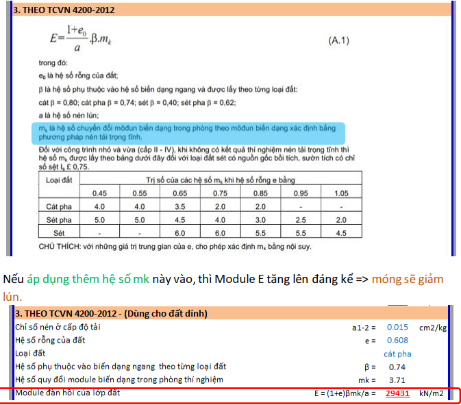 Tham khảo TCVN 4200-2012, về cách xác định Module E từ phòng thí nghiệm, thì có đề cập đến hệ só mk, mà trong hồ sơ địa chất chưa đề cập.